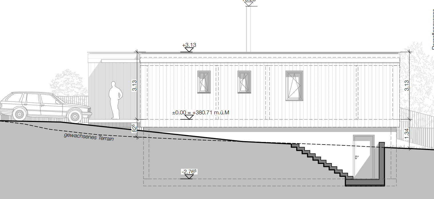 Susanne und Volker haben mit uns in der Schweiz ein WOHNWAGON Modulhaus mit zwei Modulen und ca. 65 m2 Nutzfläche realisiert. Aufgrund der hohen Grundstückspreise ist ihre Bauparzelle sehr kompakt, ein zusätzlicher Stauraum außen hätte die Gartenfläche sehr dezimiert. Zudem bot sich auch aufgrund der leichten Neigung des Grundstücks die Fundamentierung mittels eines Kellers an. Gemeinsam mit unserem WOHNWAOGN Planungsteam wurde dafür aber eine besonders geschickte und günstige Variante ausgearbeitet!