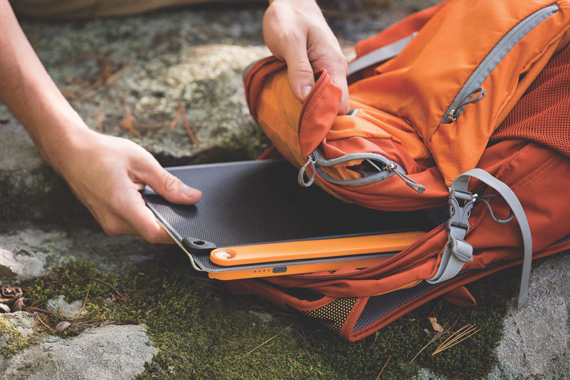 Über den USB-Ausgang kannst du deine Geräte direkt anschließen – vom Smartphone über kleine Lampen bis zur Stirnlampe. Und durch das spritzwassergeschützte, robuste Material überlebt das Panel auch wechselhaftes Outdoor-Wetter.
